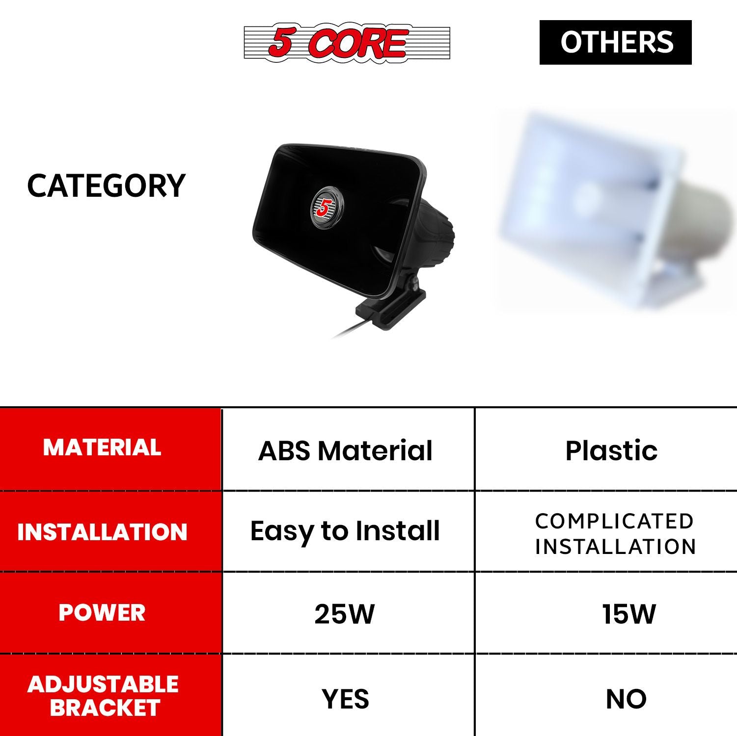 5 CORE Indoor Outdoor PA Horn Speaker 8 x 5 Inch Loud Portable PA Speakers 8 Ohms 65 Watts Max Horn Siren Adjustable Mounting Bracket & Hardware Included Black - HW 508 BLK