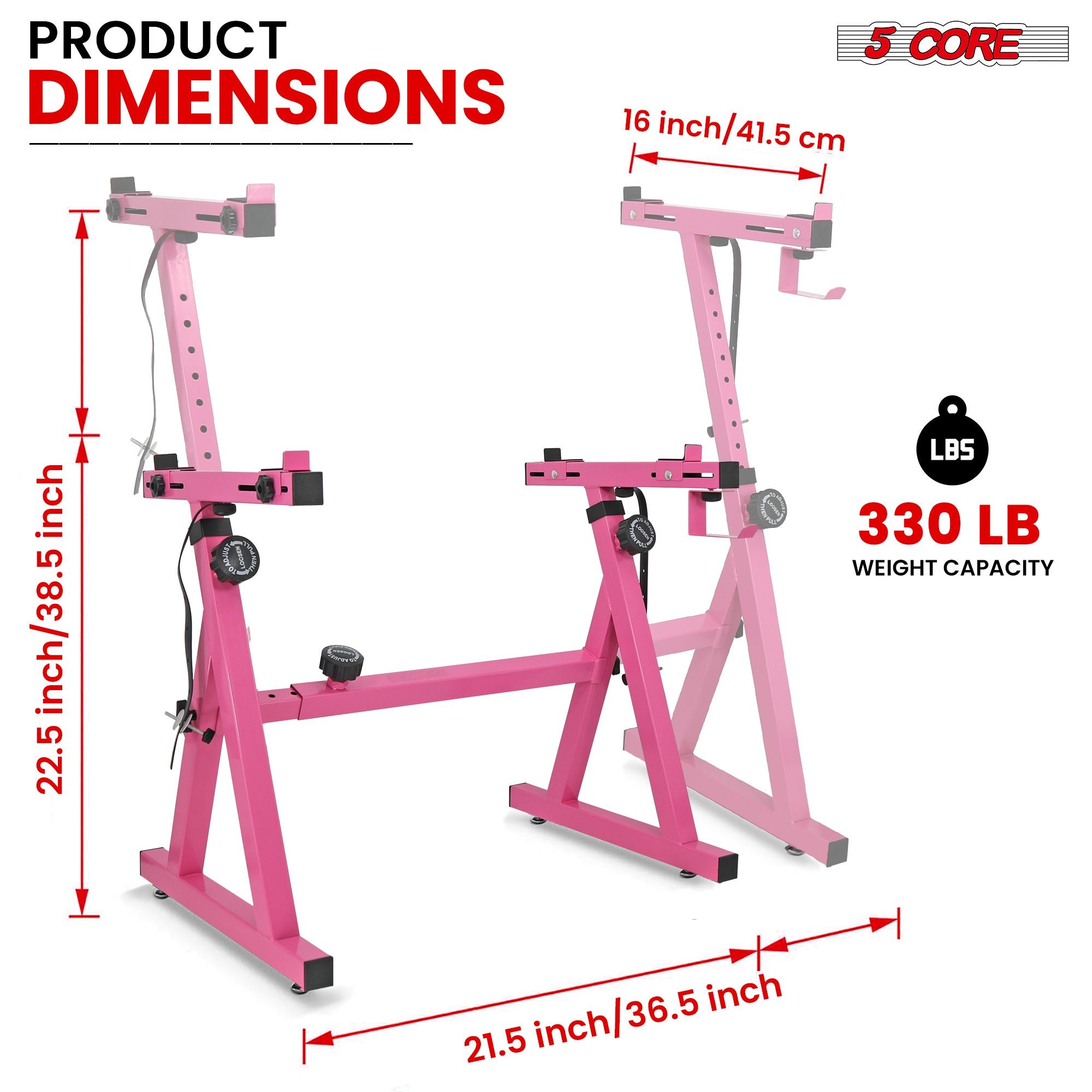 5 CORE Keyboard Stand Riser Z Style Height Width Adjustable Portable Heavy Duty Music Stands Holder for Kids and Adults Fits 54 to 88 Key Electric Pianos - KS Z1 BPNK HD
