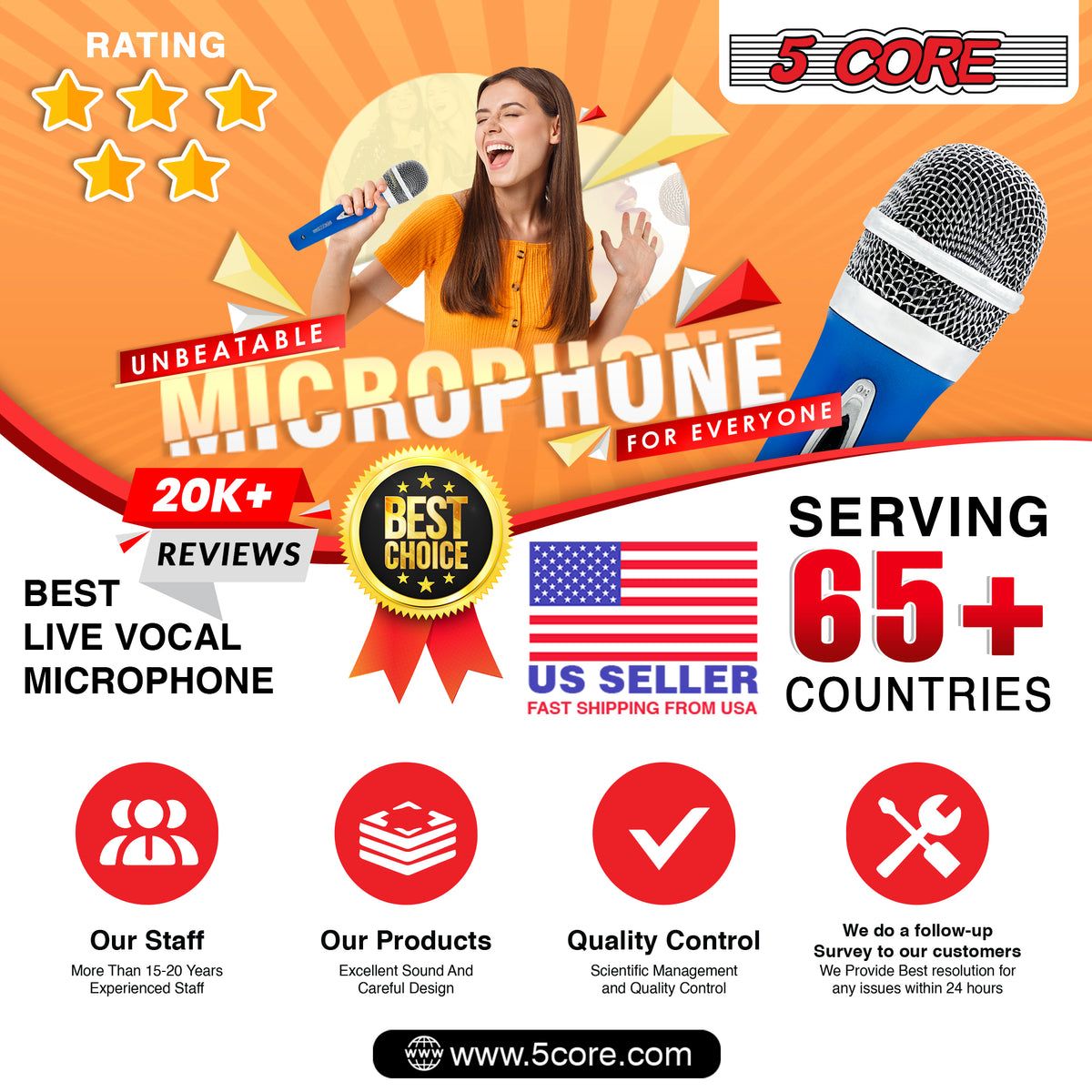 5 CORE Microphone Dynamic Vocal Handheld Mic Cardioid Unidirectional Microfono w On Off Switch + XLR Audio Cable for Singing Karaoke Public Speaking & Parties PM 286 BLU