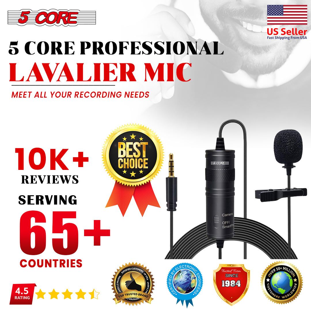 5 Core Professional Omnidirectional Lavalier Microphone 3.5mm Clip-On Lapel Mic for Smartphone DSLR Camera PC Interview Video Camcorders Audio Recorder cm 001 ADP