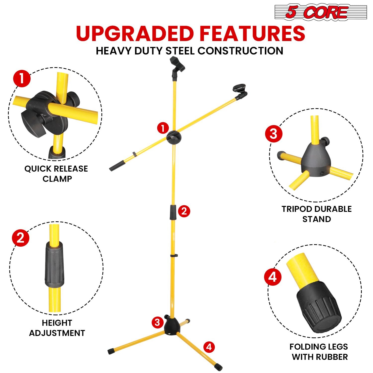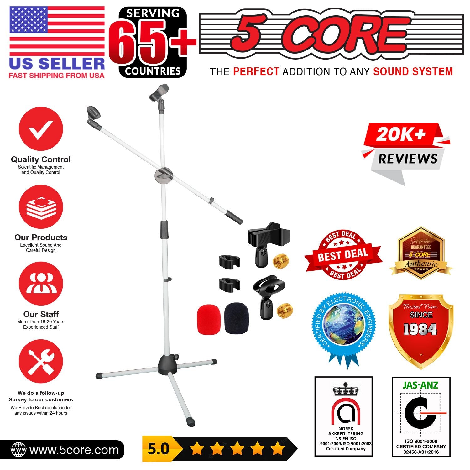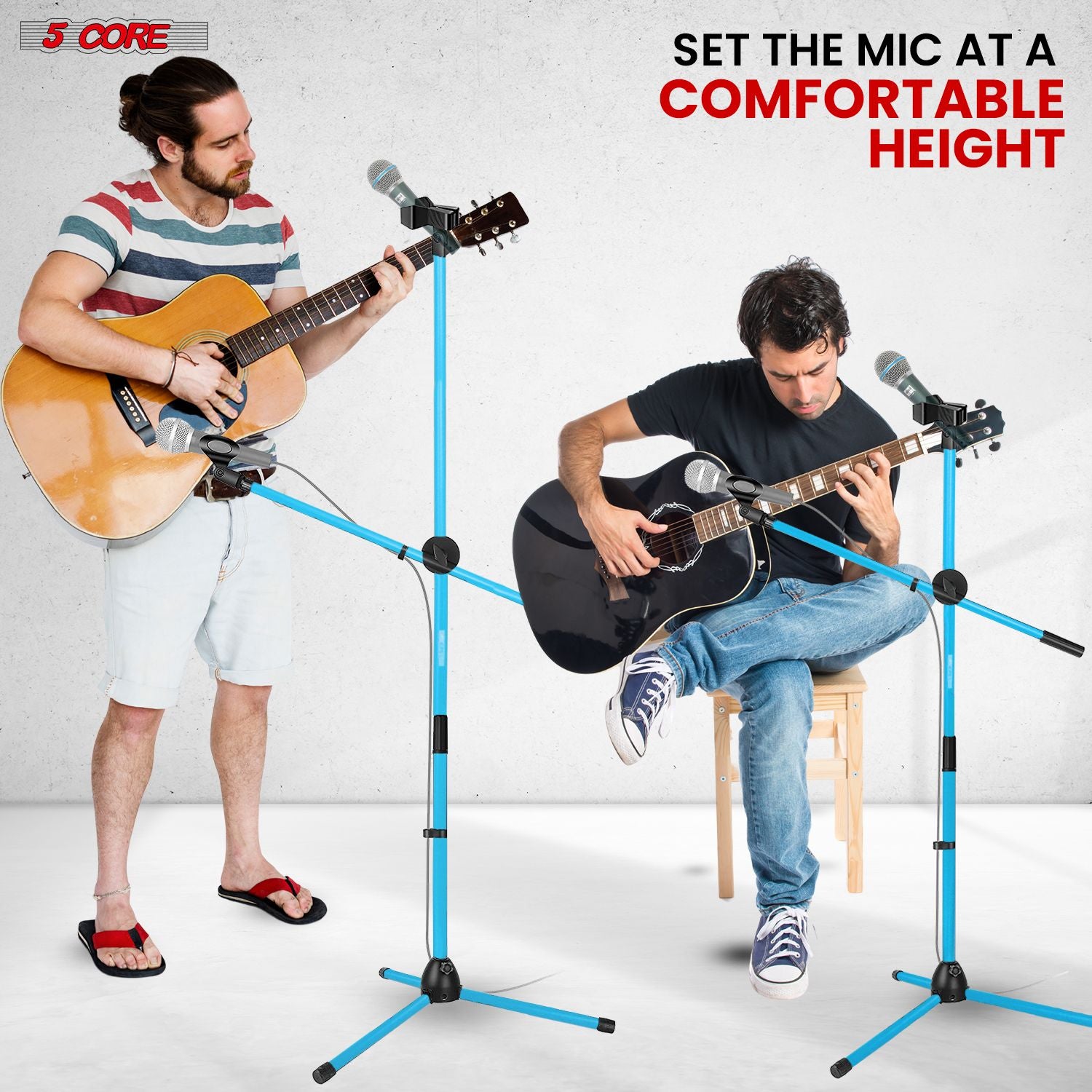 5 Core Tripod Mic Stand Floor Adjustable 31 to 76 Inches Boom Arm Holder Microphone Stands 360 Degree Rotating + Dual Mic - MS DBL G