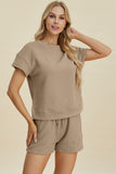 Double Take Full Size Texture Short Sleeve Top and Shorts Set